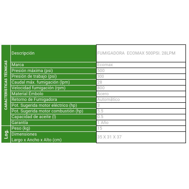 Bomba de Fumigación HS-700 Ceramica Tipo de bomba: Piston Ceramica Potencia requerida 35 Hp Caudal: 231 – 519 Lts/min Altura Máxima: 357 m.c.a Rpm: 600-900 Diametro 2.1/2" * 1.1/2" Salida Presion 3/4" Salida Bombeo 3"