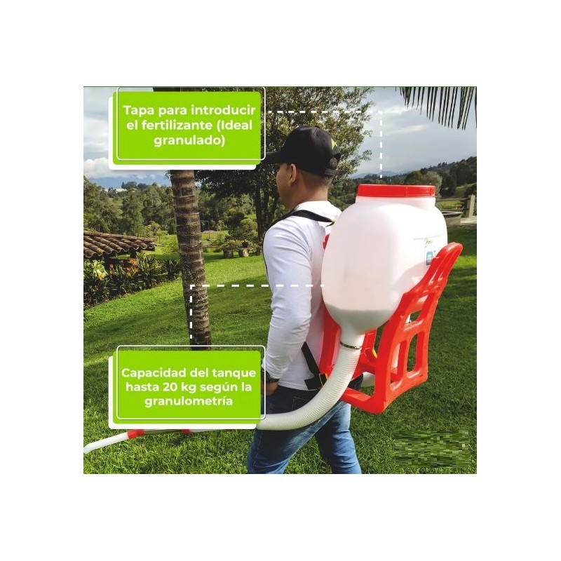 Abonadora sembradora, Diseñada para la aplicación uniforme de semillas de pasto en general, semillas de algunas hortalizas, abonos nitrogenados granulados y en general todos aquellos productos que se apliquen al boleo. VER VIDEO