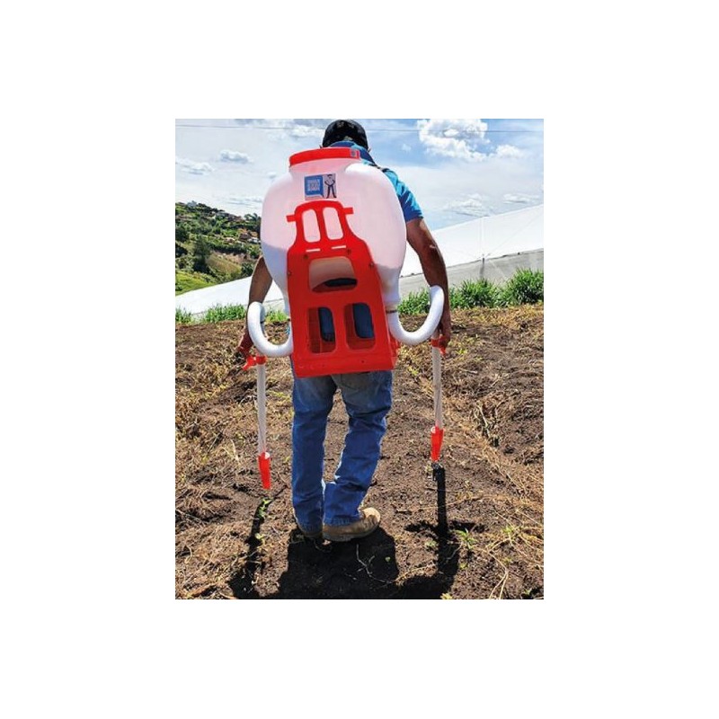 • Equipo ergonómico ajustable en altura (correas) tipo mochila para espalda que evita el contacto de la piel con el