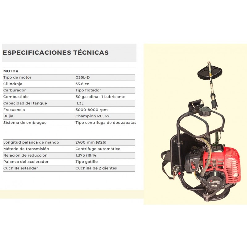 Con cuchilla de 2 dientes incluida • Sistema de transmisión centrífugo automático y diseño tipo mochila