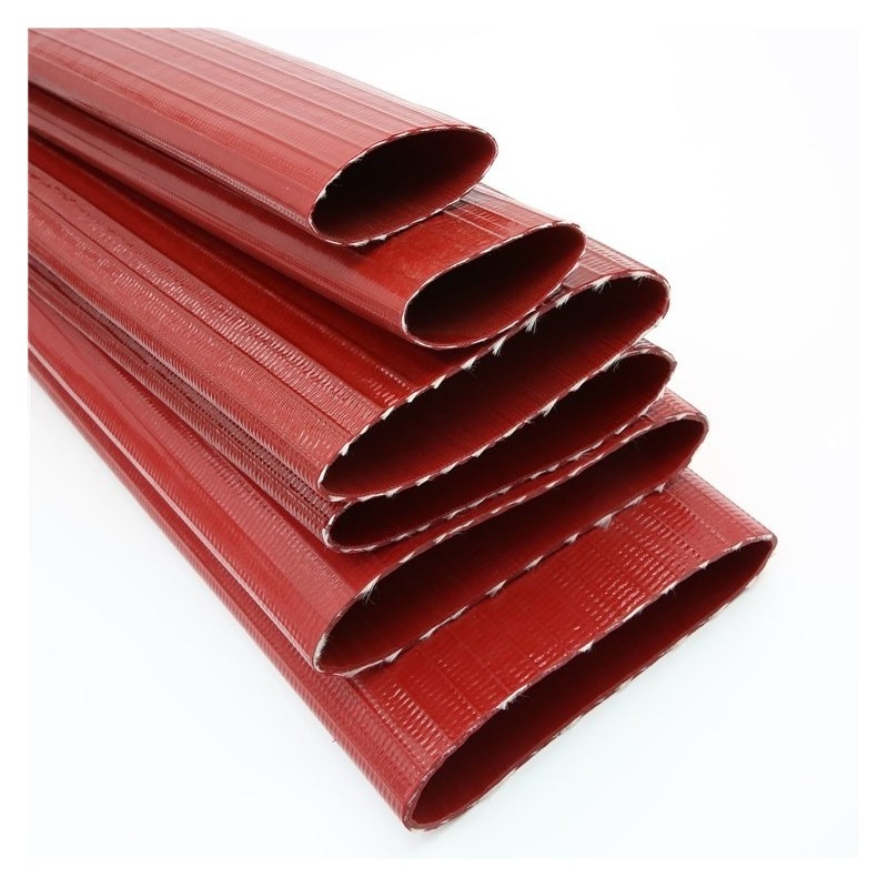 MANGUERA PLANA PVC ROJA 90 PSI (6BAR), que fue hecha de Dacron y recubierta con plástico de buena calidad, tiene ventajas tales como propiedades anticongelantes, anti-presión, anticorrosión, fácil de mover y doblar, etc, buena presión de trabajo. Temperatura de trabajo: -15ºC a + 70ºC.
