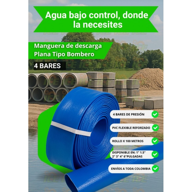MANGUERA PLANA AZUL PARA TRANSPORTE A BAJA PRESIÓN DE 4 BAR X 100 MTS
