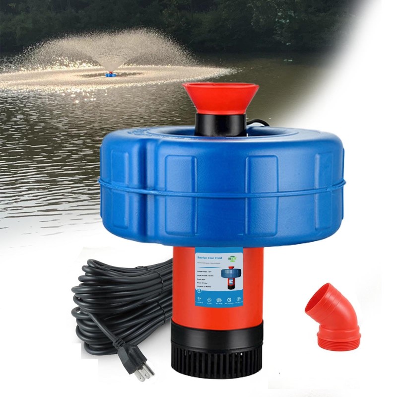 Aireador sumergible tipo fuente MONTEE, motor eléctrico de 1.0HP a 220 voltios monofásico utilizado para aireación y desgasificación de lagos o tanques de geomembrana. Además, puede ser usado como bomba de transferencia de agua de un estanque a otro.