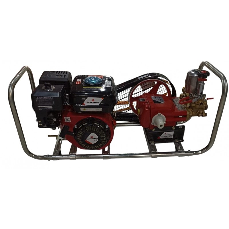 Máquina potente que sirve para trabajos pesados en plantaciones frutales, palma y grandes potreros. Fumigadora Estacionaria ALTERMAN XPD25SD acople directo Motor 6,5hp gasolina , Caudal 25Litros/min, presión de 305-635PSI, Manguera Lanza y kit de succión