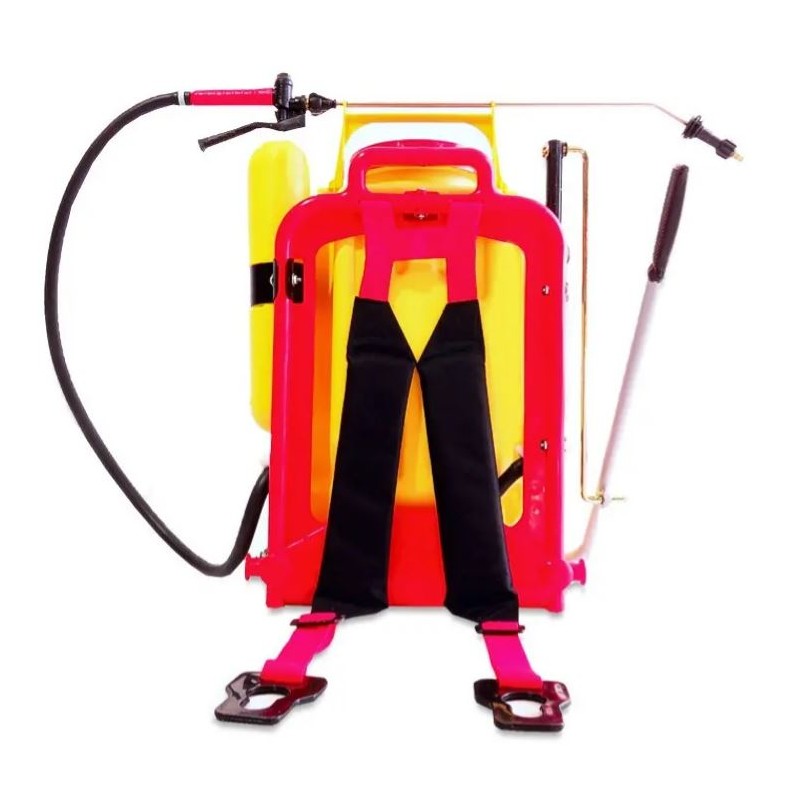 Pulverizadora de espalda 20 Lts. Fabricada con los mejores materiales disponibles en el mercado para la aplicación de sustancias químicas en el control de plagas. En la boca de llenado va una taza filtro fina de llenado rápido. La tapa esta provista de una válvula de aire que impide la salida de líquido y un sistema de agarre para el transporte de la...