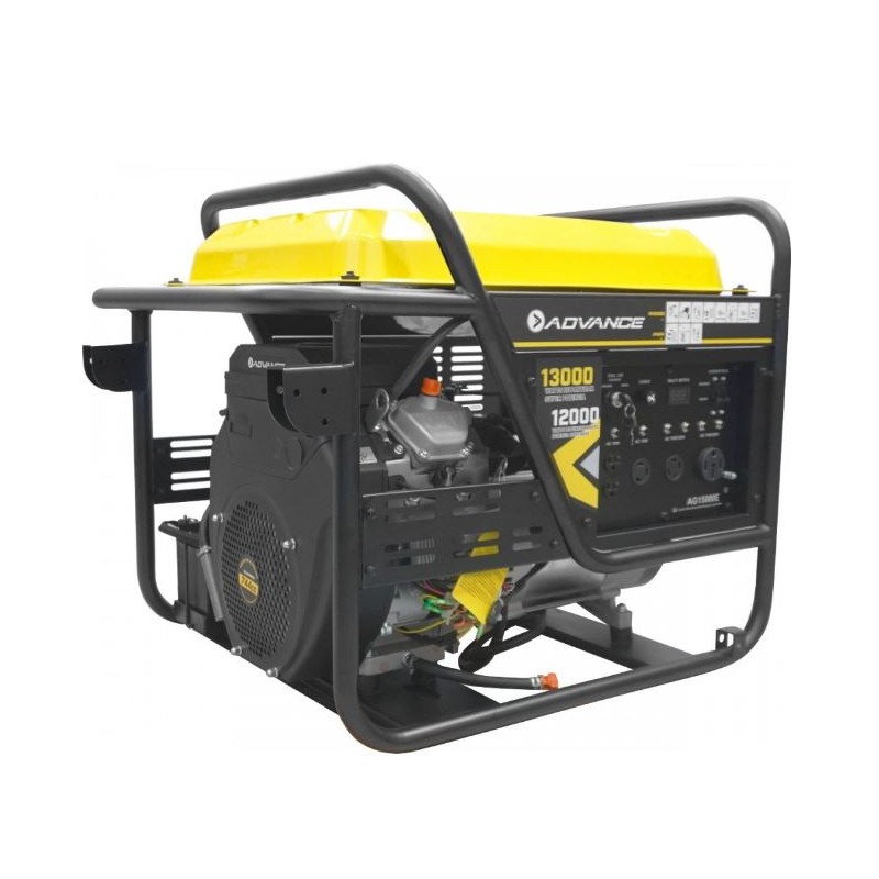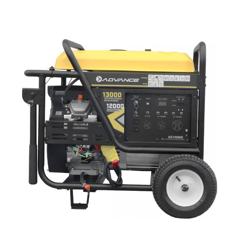Planta Eléctrica Advance AG15000E es un generador monofásico de alto rendimiento, diseñado para suministrar energía confiable y estable en hogares, negocios, industrias y emergencias. Con una potencia continua de 12000W y una potencia máxima de 13000W, es ideal para equipos de alto consumo energético, garantizando un suministro eficiente. Equipada con un motor de 15,000W a gasolina, esta planta eléctrica ofrece una autonomía prolongada gracias a su tanque de 42 litros, con un consumo optimizado de 6.46 L/h al 50% de carga. Su sistema de regulación AVR mantiene un voltaje estable, protegiendo equipos electrónicos y maquinaria industrial. Su arranque eléctrico permite una activación rápida y sin esfuerzo, mientras que su diseño resistente y portátil con ruedas incorporadas facilita su transporte. Además, sus conexiones eléctricas incluyen 3 tomas a 110V y 1 toma a 220V, adaptándose a distintas instalaciones.