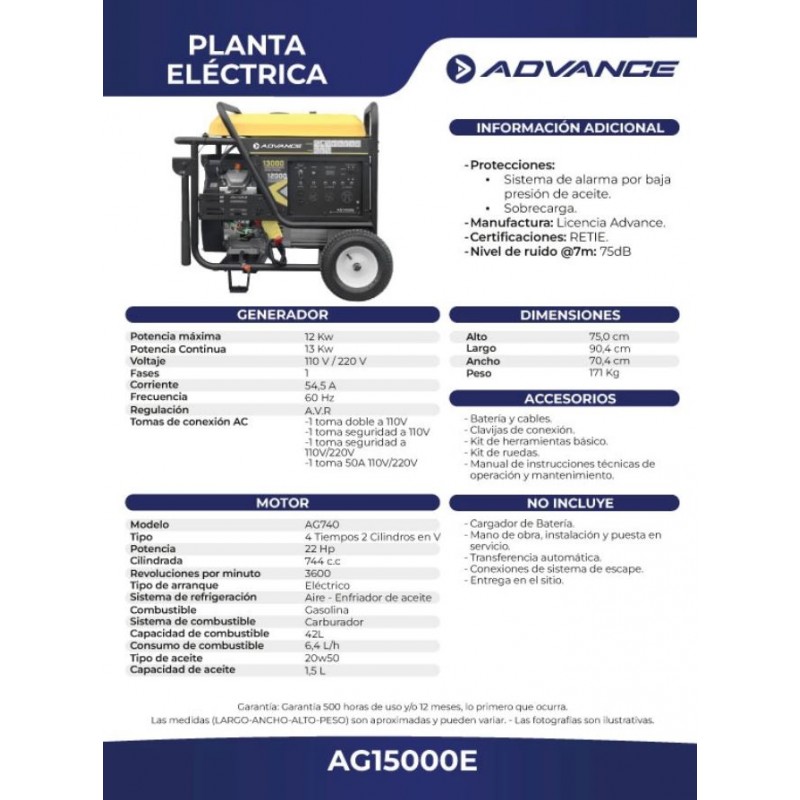 PLANTA ELÉCTRICA ADVANCE 12 KW GASOLINA