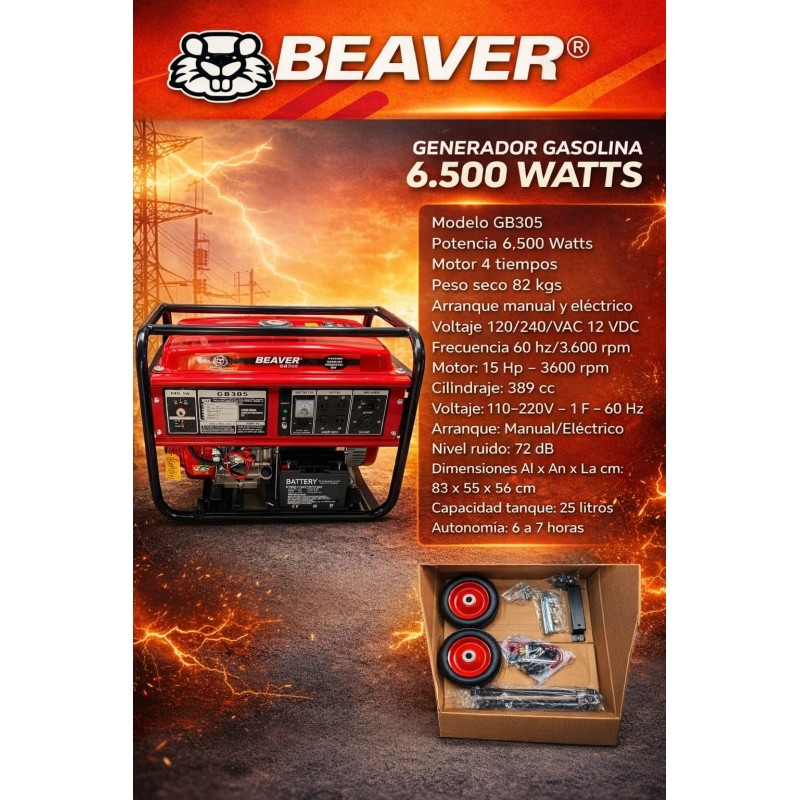 GENERADOR BEAVER A GASOLINA 6.5 KW