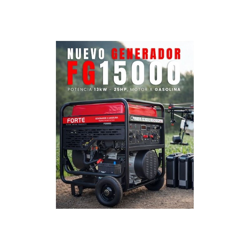 Generador eléctrico FORTE FG15000 es una solución ideal para quienes buscan una planta eléctrica a gasolina monofasica de alto rendimiento. Con un potente motor de 25 HP y capacidad continua de 13 kW continuos. Ofrece salidas de 120V, 240V ymonofásico. Su arranque eléctrico permite encendido rápido, y su tanque de 45 litros brinda hasta 8 horas de autonomía.Beneficiario :