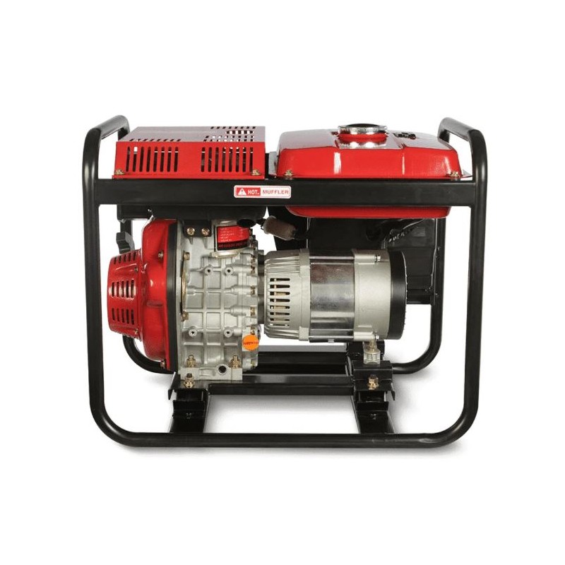 Generador eléctrico Diésel Power Master, ideal para uso en emergencias con cargas básicas. • Generador de encendido eléctrico y manual. • Incluye cargador de baterías. • Sensor luminoso de bajo nivel de aceite y protector de sobrecarga. • Voltímetro. • Debe ser operada en lugares abiertos y/o ventilados. • Cuenta con llantas.