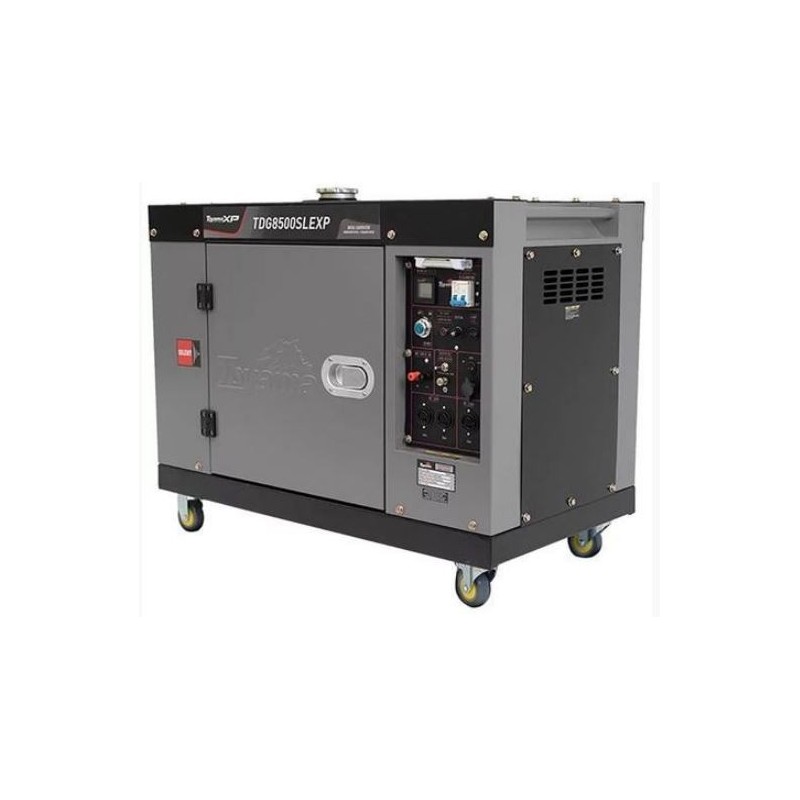 Generadores Toyama XP - TDG8500SLEXP. Equipado con un motor diésel refrigerado por aire, tiene una potencia máxima de 7,0 kW kVA y un Tanque con capacidad de Combustible de hasta 14,1 litros. Motor Silencioso y potente, logra satisfacer todas las demandas profesionales y necesidades de suministro eléctrico.