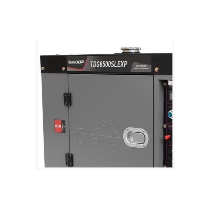 Generadores Toyama XP - TDG8500SLE3DXP. Equipado con un motor diésel refrigerado por aire, tiene una potencia máxima de 7,0 kW kVA y un Tanque con capacidad de Combustible de hasta 14,1 litros. Motor Silencioso y potente, logra satisfacer todas las demandas profesionales y necesidades de suministro eléctrico.