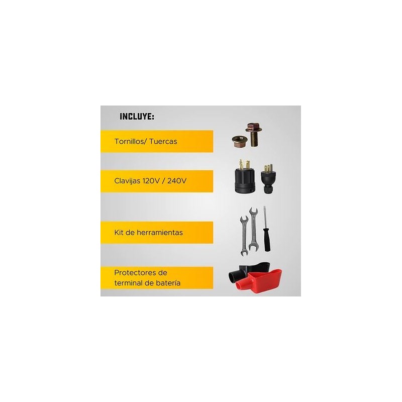 Planta Eléctrica Diésel GoodYear 7.5Kw 120/240v 1f GY80001GDS, arranque eléctrico, ofrece una potencia máxima de 7,5 kW y nominal de 7 kW, operando tanto en 120 V como en 240 V con frecuencia de 60 Hz. Además de sus tomas principales, incluye salida DC de 12 V / 8,3 A, regulador automático de voltaje (AVR), voltímetro analógico, sensor de aceite y sistema...
