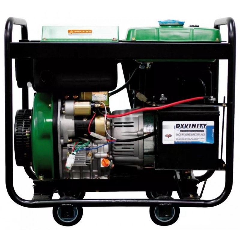 Generador eléctrico Diésel Power Master, ideal para uso en emergencias con cargas básicas. • Generador de encendido eléctrico y manual. • Incluye cargador de baterías. • Sensor luminoso de bajo nivel de aceite y protector de sobrecarga. • Voltímetro. • Debe ser operada en lugares abiertos y/o ventilados. • Cuenta con llantas.