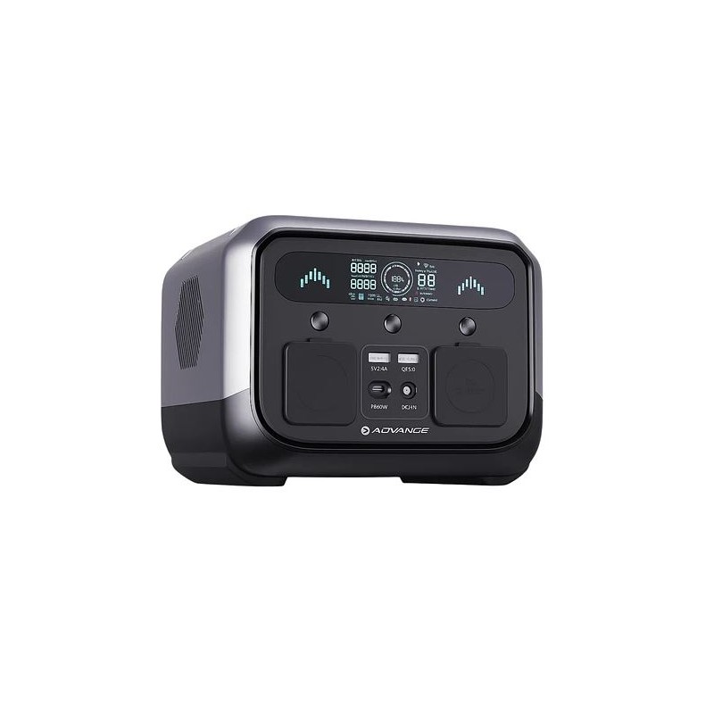 Estación Portátil de Energía Advance 700w Pro700, acumulador de corriente eléctrica ofrece 400W de potencia nominal y 600W pico, con batería de 275Wh recargable por red, vehículo o panel solar. Compacta, ligera y versátil, cuenta con múltiples salidas (AC, USB, 12V y carga inalámbrica) e iluminación integrada, ideal para emergencias, camping y trabajo móvil.