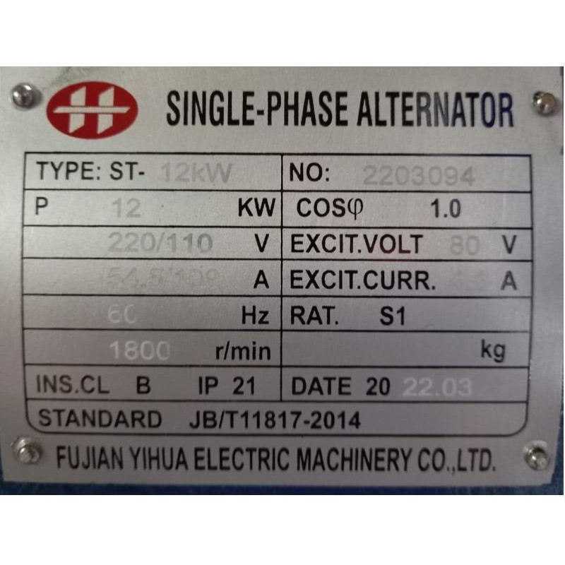 GENERADOR 12KW -1.800 RPM,EJE LIBRE ACOPLE POR POLEAS