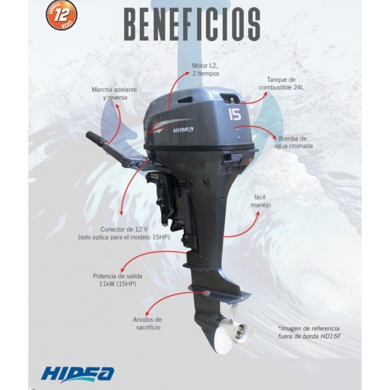 MOTOR FUERA DE BORDA HIDEA 15HP -2T - PATA CORTA