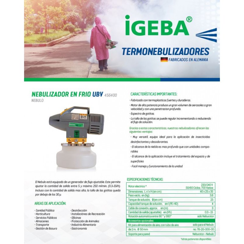 IGEBA NEBULO, 4 litros 110V, partículas 20-50mm, peso 3,8kg