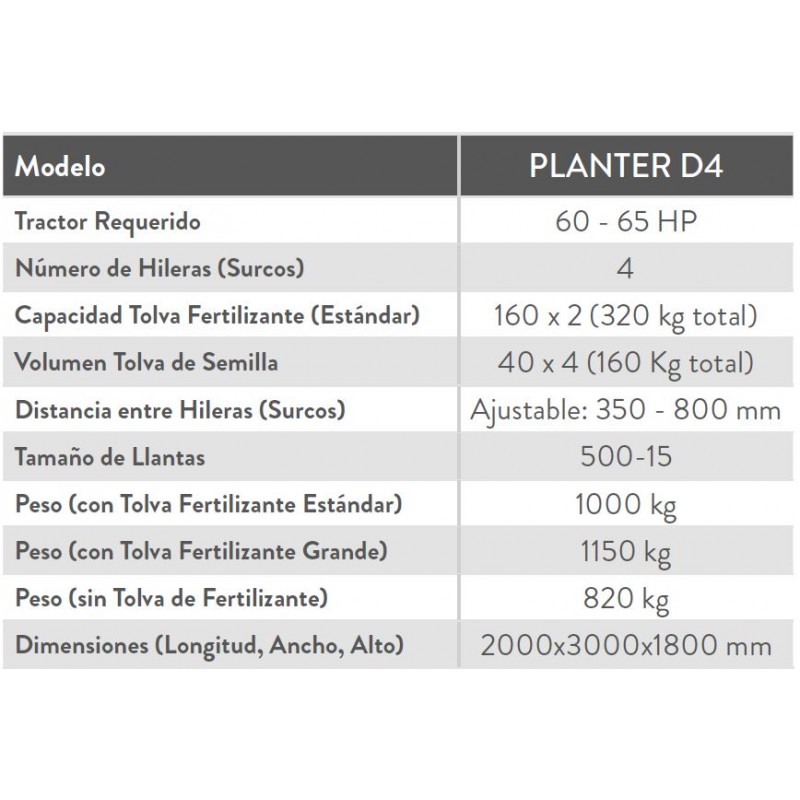 tracción constante sin patinaje en terrenos irregulares. Cuenta con opciones de tolvas de fertilizante de gran capacidad para