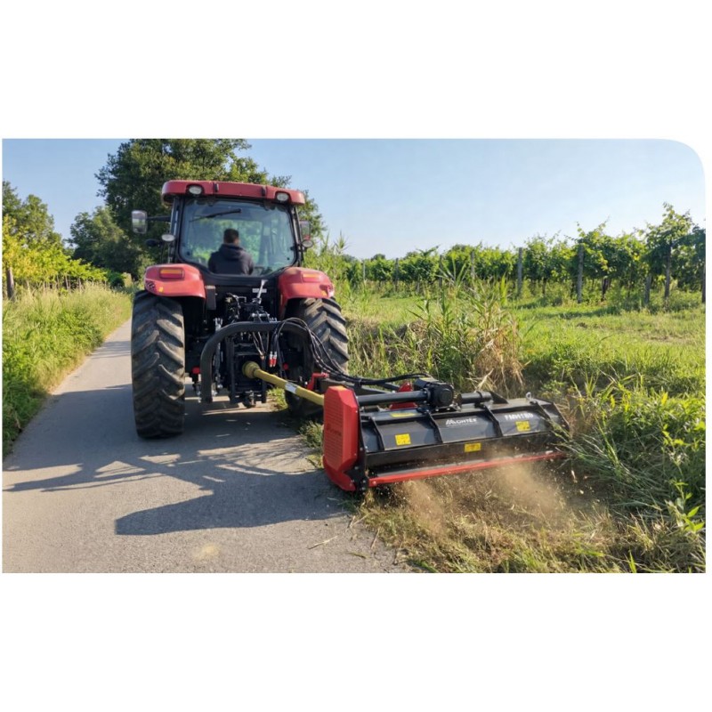 Diseñada para el mantenimiento de terrenos difíciles donde una desbrozadora convencional no llega. Gracias a su brazo de paralelogramo hidráulico, puede trabajar alineada detrás del tractor o desplazarse lateralmente para limpiar bordes de carreteras, cercas y zanjas.